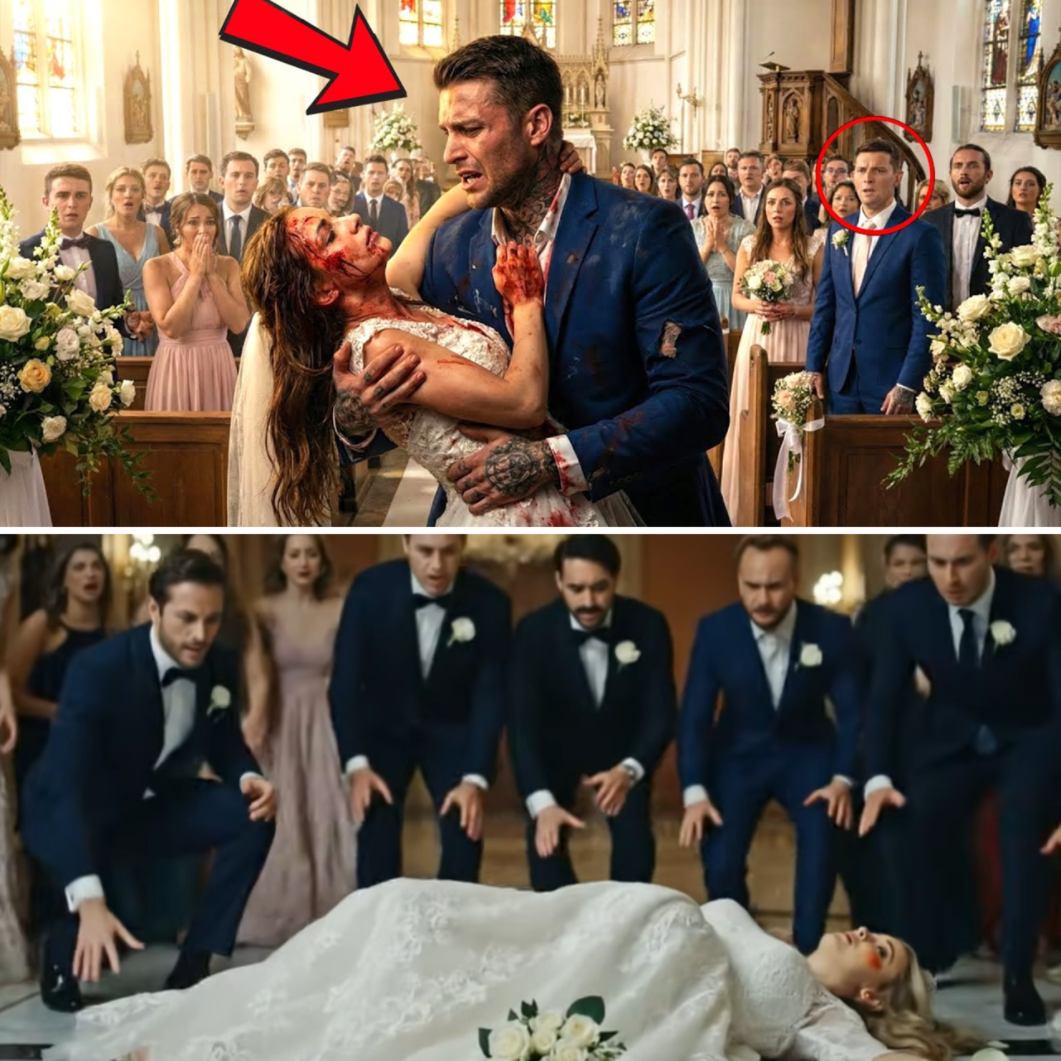 The room froze. The violins fell silent. Champagne flutes shattered. The grandest wedding of the year was turning into a live-streamed crisis. Elena lay motionless, her veil draped in a perfect circle, her bouquet rolled away, white petals like feathers. The contrast between the beauty of the decor and her still form was so stark that guests didn’t know if they were witnessing a medical emergency or a scandal.