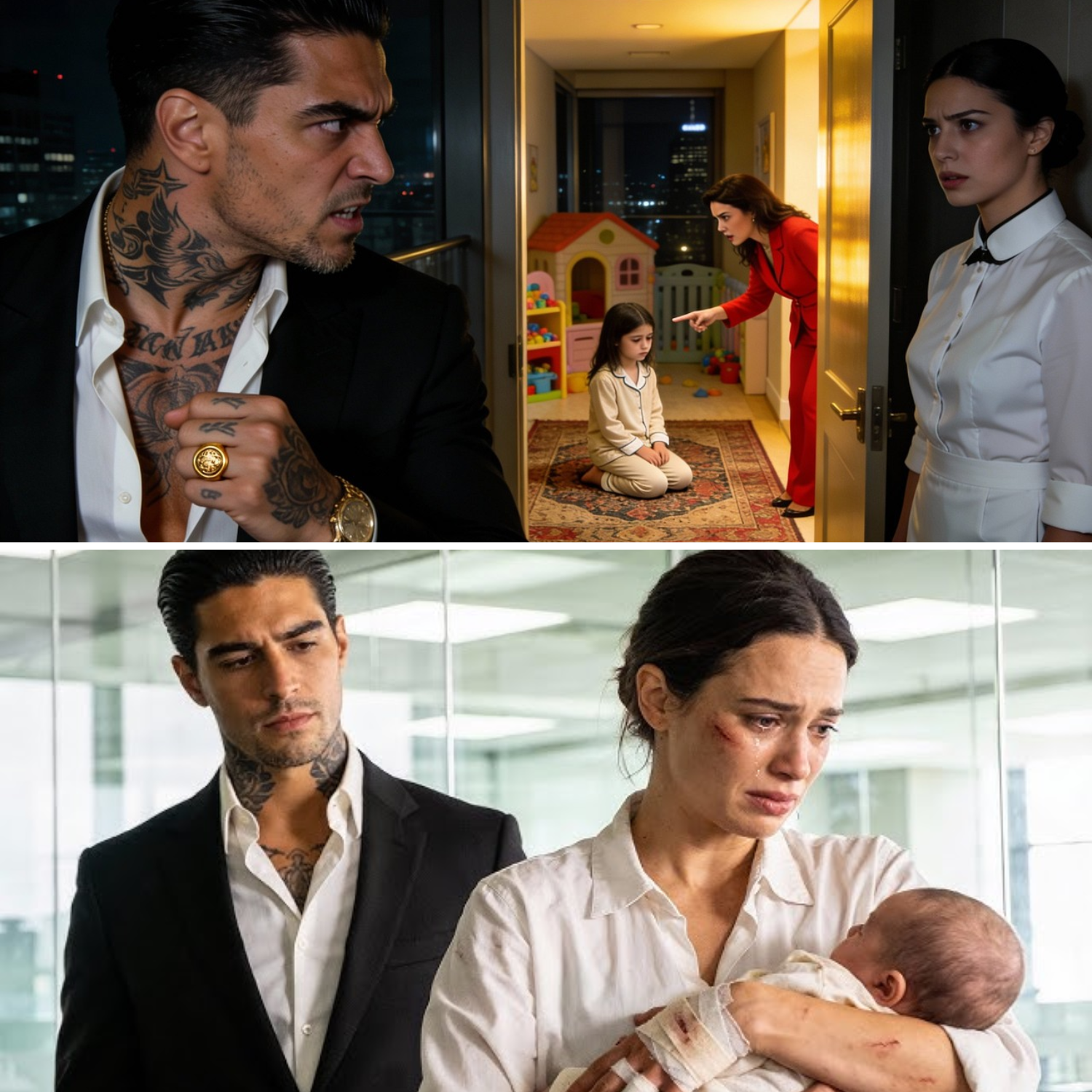No one called him Dominic. Not his soldiers, not his business partners, not even Victoria, his fiancée, who preferred “darling.” But Elena said it like a prayer. They moved through shadows he knew intimately. As they approached the playroom, Elena positioned him behind a column, then pointed through the doorway. Dominic saw his daughter kneeling on the Persian rug, small shoulders shaking. Lucas stood rigid beside her, hands clasped like a prisoner. Towering over them, pacing in designer heels, was Victoria Santoro—his fiancée, daughter of Antonio Santoro. Their engagement was a treaty between warring families.