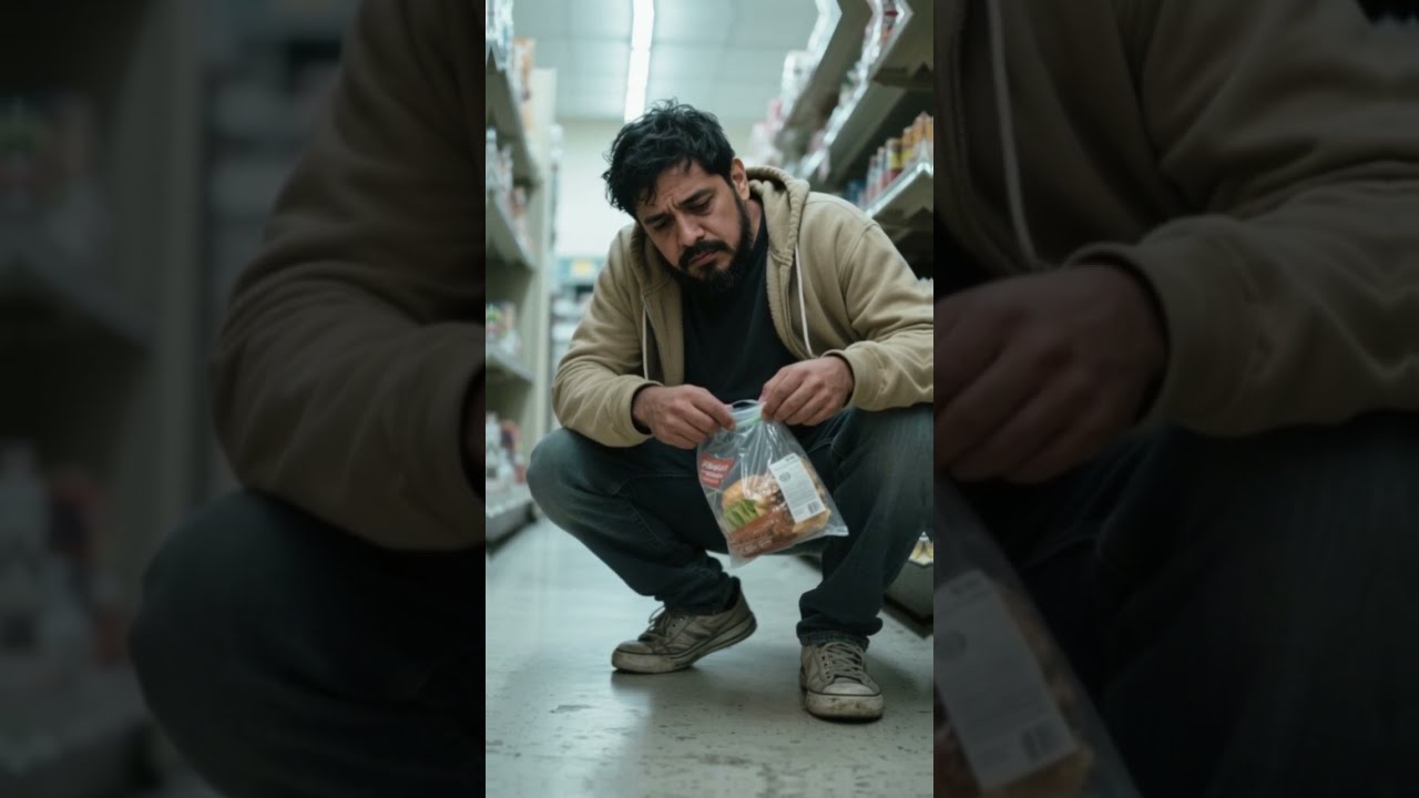 The cashier, still wide-eyed, began scanning the items. More food. Milk. Diapers. Groceries started piling up on the counter. The man—his name was Diego—stood trembling, tears beginning to form. The loaf of bread slipped from his coat onto the floor.