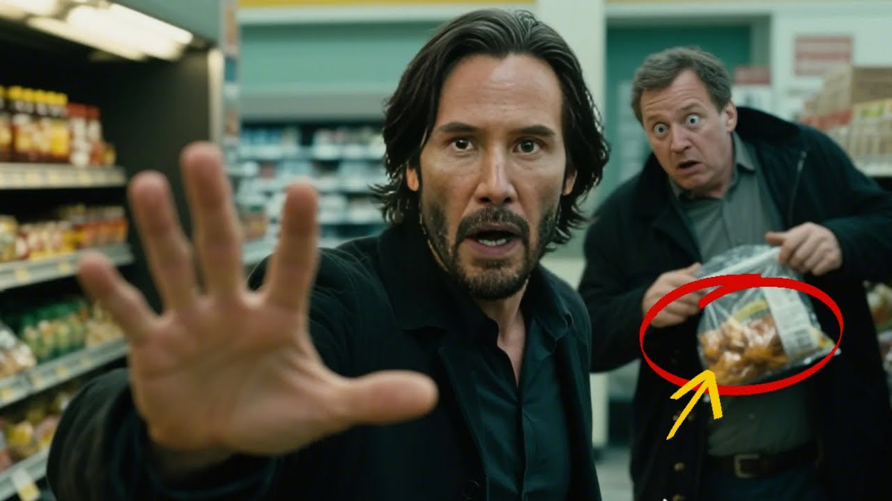 Yes, that Keanu Reeves. The movie star. The action hero. The man who somehow made quiet humility look heroic even off-screen. But this wasn’t a film. There were no cameras. No bodyguards. Just Keanu, alone in a hoodie and jeans, staring calmly at the man with stolen food bulging from his jacket.