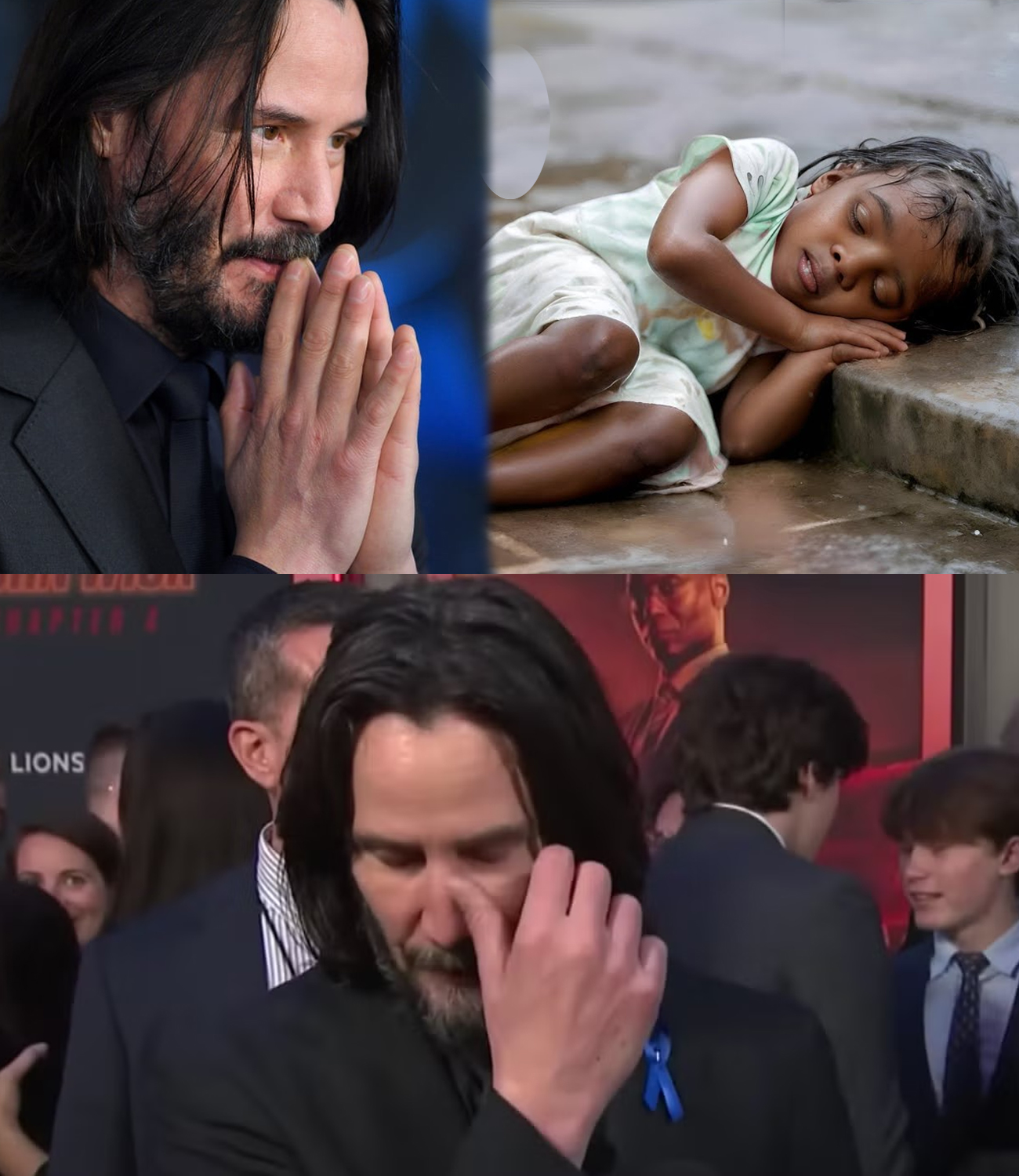 Keanu, returning from a quiet grocery run, wore a gray hoodie and a baseball cap pulled low. He was used to being recognized, but today, he was just another soul in the city. As he turned the corner near his building, he nearly stumbled over a little girl, maybe six years old, curled up beside a lamppost. Her dress was soaked, her hair plastered to her forehead, and she had no shoes. She hugged her knees, her cheek pressed to the cold concrete as if it were the last comfort in the world.